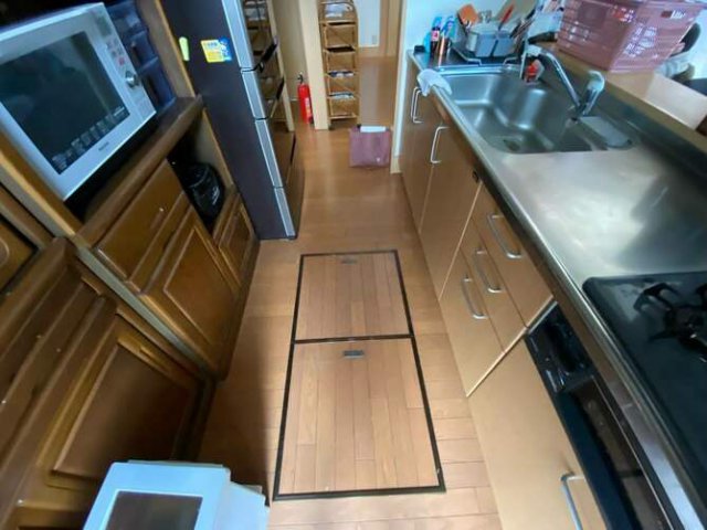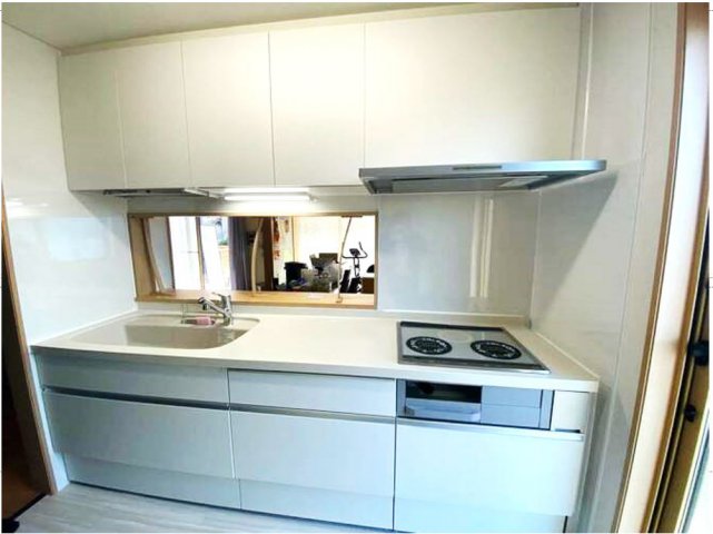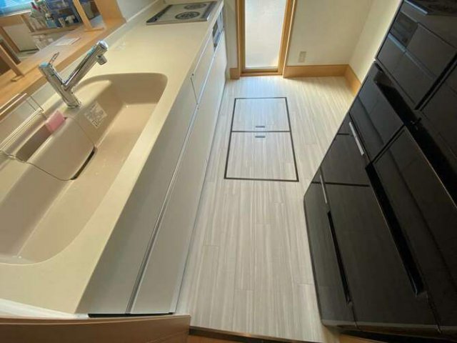 キッチン本体に合わせて白のクッションフロアを上張り。