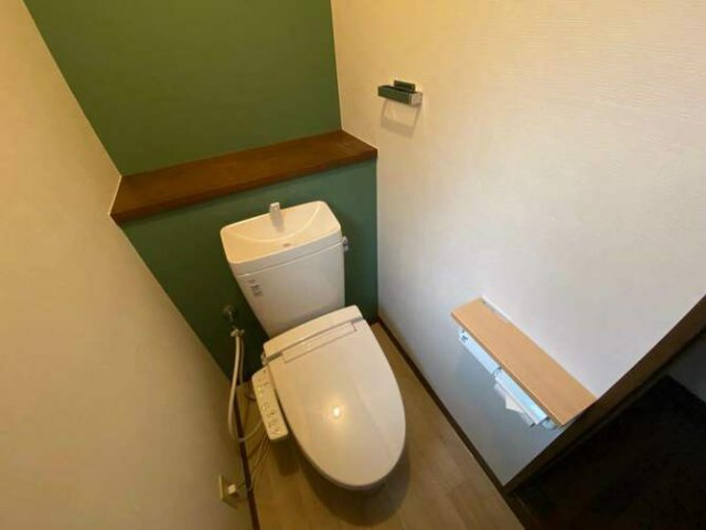 奥様こだわりのグリーンのアクセントクロスで、素敵に仕上がりました♪