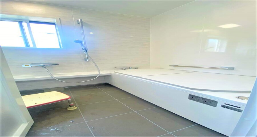 床は、磁器タイルを使用。お湯をかけるだけでぽかぽか熱が伝わりやすく、すぐにあたたまります。じんわりと優しいぬくもりが、足もとを快適にします(^^)