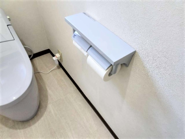 色は、ブルーグレーをお選びいただきました。トイレとあわせて紙巻き器も同じ色に!