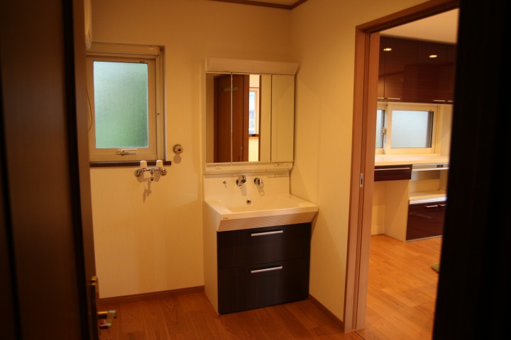 やりたい内容は、お風呂に暖房換気扇・脱衣所にも暖房機器、エコキュート+IH、対面キッチン、リビングの段差解消といった内容をお話下さり、「後は全部おまかせします。」とご信頼頂きながらの打合せでした。
