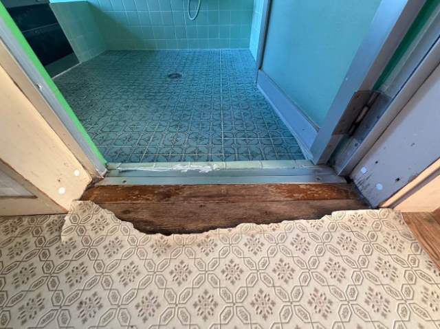 タイルが割れ、テープで補修しながらしのいでおられました。