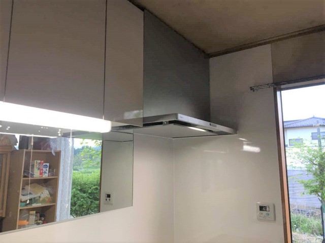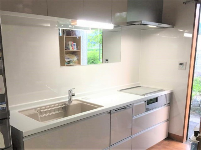 キッチンの位置は動かさず、鏡をそのまま残すリフォームとなりました。