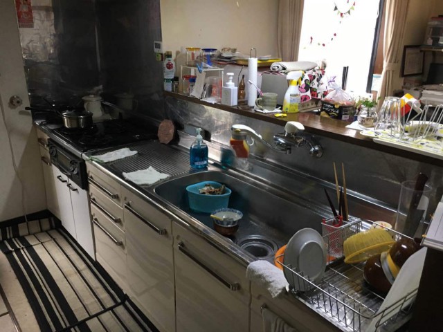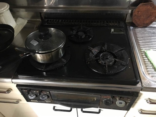 キッチンは、ガスコンロの片方が壊れたまま、