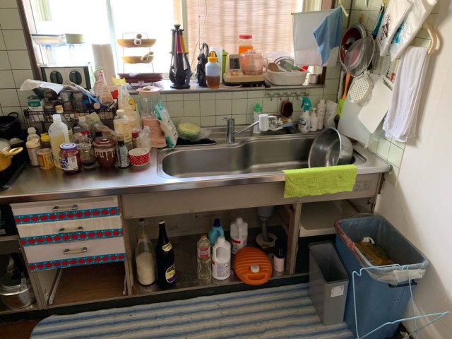 ご不便は、冷蔵庫や食器棚がキッチンの反対側に置いてあり、