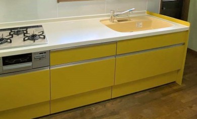 鮮やかな黄色のキッチンをお選びいただきました♪