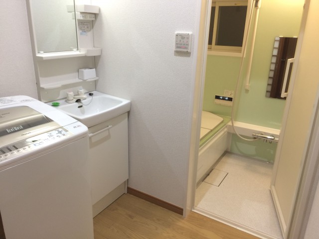 洗面台と洗濯機の場所も調整して、使いやすい洗面所、浴室に変身しました。