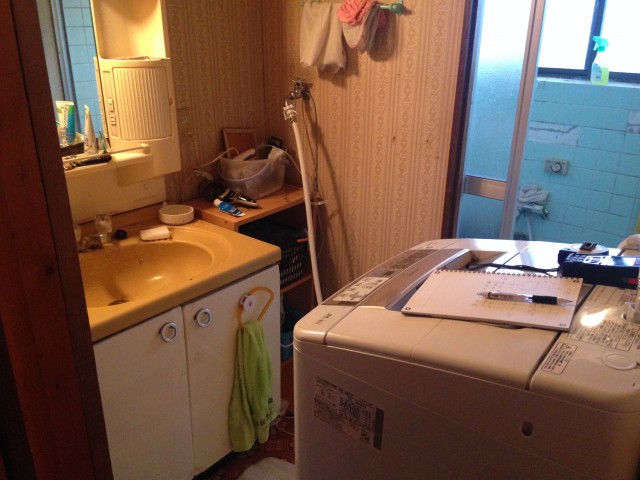 実際に現場にお邪魔してみると、0.75坪の脱衣所内に洗濯機と洗面台が上手く収まっておらず、狭く使いづらい空間となっていました。