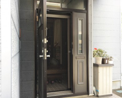 ③ 玄関プリーツ網戸設置+リビングすべり出し窓へ網戸設置
