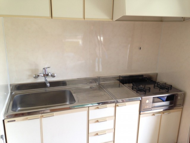 キッチンはそのままお使いになりますが、なぜか流し台の前にあった段差を解消し、汚れにくくなるキッチンパネルを取り付け、お料理がとっても楽になるガスコンロを納入いたしました。