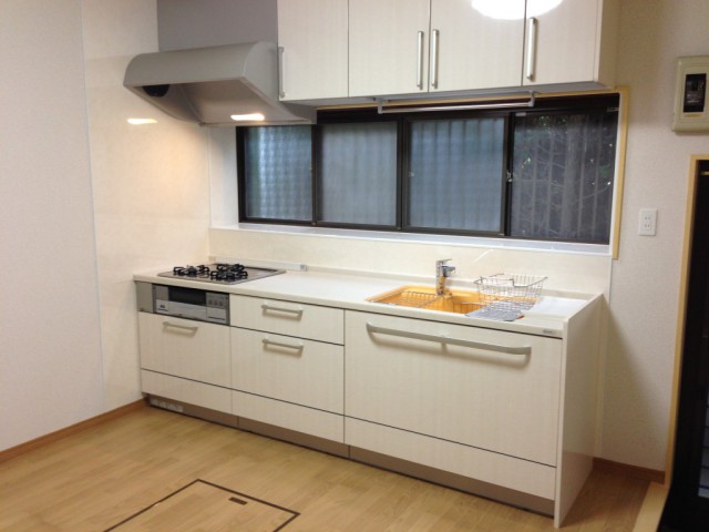 キッチンだけではなく、台所全体もキレイにすっきりさせたいとのことで、床壁天井も新しくいたしました。明るく、広々をした台所に生まれ変わりました。