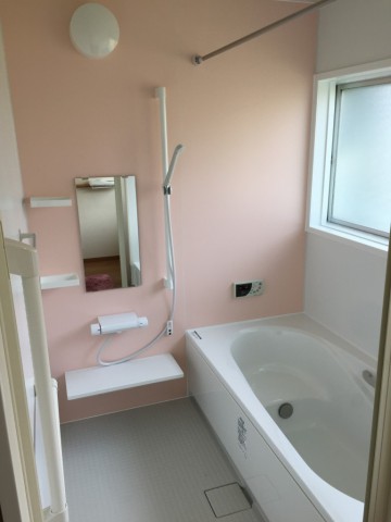 ピンクベースのかわいらしいバスルームへリフォームされ、娘さんにも喜んでいただけました。