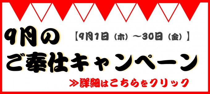 「9月の現品特価!」とおっしゃったお客さまへの限定提供です!