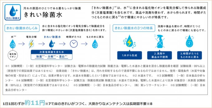 「床ワイパー洗浄」+「きれい除菌水」で、