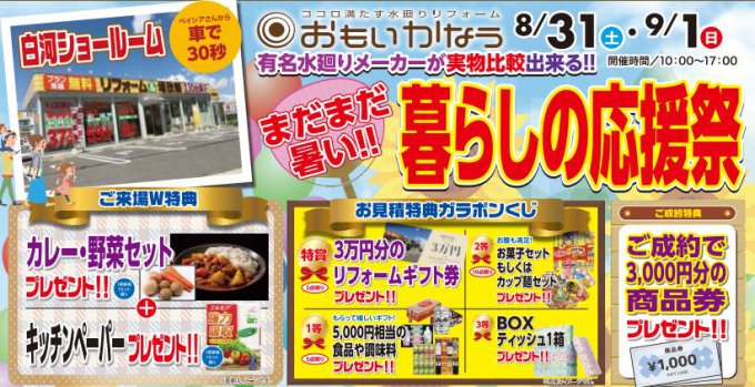 「白河ショールーム店、ご来店の方 限定」のイベントです!